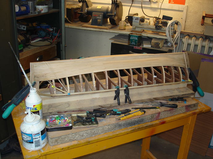 ******Serie de photo de la réalisation du Trabaccolo. Le projet est de pouvoir realiséé la maquette navigant avec une radio à deux voies.******